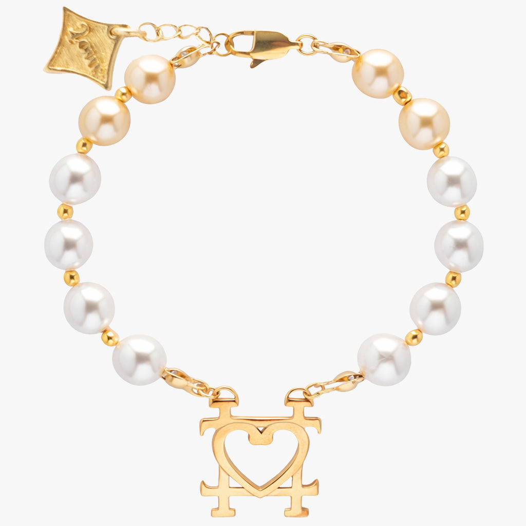 This pearl bracelet features our signature 24 emblem in a two-toned finish.